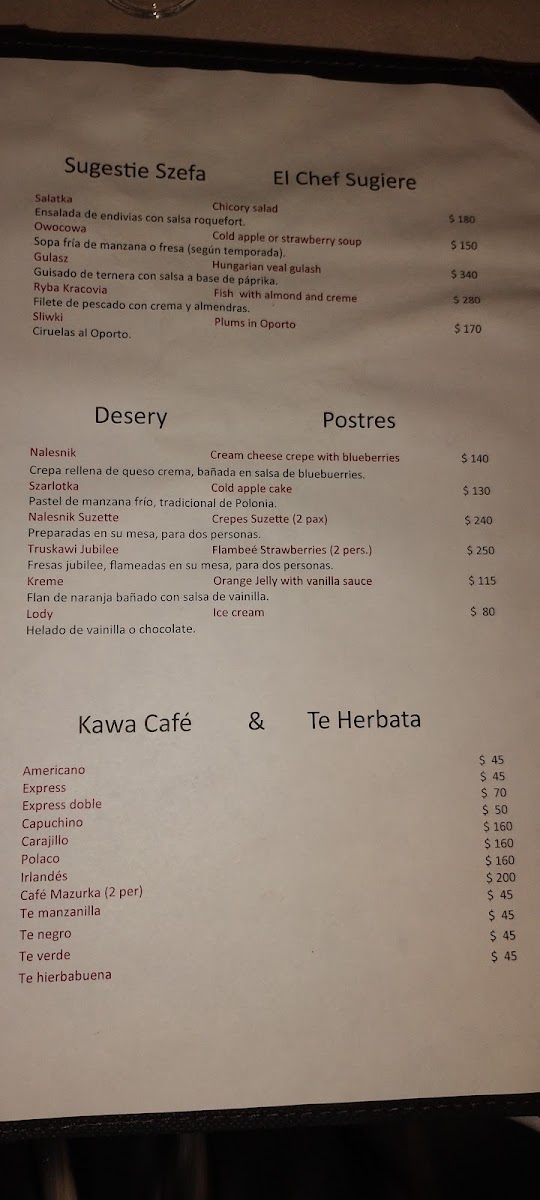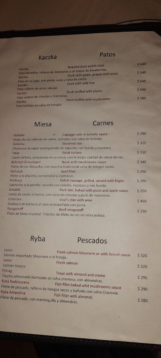 Introducing Mazurka, a hidden gem located in the heart of Mexico City at C. Nueva York 150. This Polish restaurant invites you to indulge in authentic Eastern European flavors while enjoying live piano music that enhances the dining experience. The menu boasts traditional dishes like kaczka (duck), kotlet schabowy (breaded pork chop), and pierogis that captivate the palate with their rich, comforting tastes.